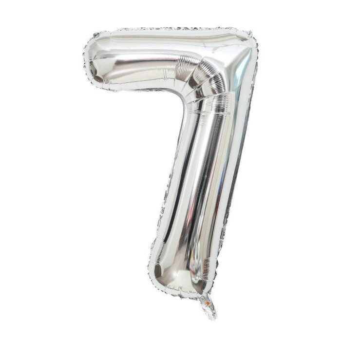 Фольгированный шар цифра 7 серебро 1 метр | Семерка на день рождения | Серебряная цифра | Украшение праздника