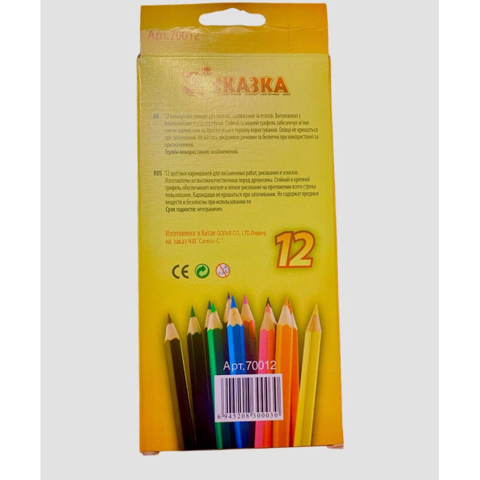 Цветные карандаши «Сказка» 12 цветов — идеальный набор для детского творчества Качественные шестигранные цветные карандаши в картонной коробке. Набор из 12 ярких цветов специально создан для детского рисования. Удобная шестигранная форма предотвращает скатывание со стола и способствует правильной постановке руки при письме и рисовании. Ключевые преимущества: Шестигранная форма: Удобно держать в детских пальчиках, не скатываются Яркие цвета: Чистые насыщенные пигменты для красочных рисунков Безопасные материалы: Нетоксичные компоненты, безопасные для детей Прочные грифели: Устойчивы к поломке при падении Экологичная упаковка: Картонная коробка для удобного хранения Лучший выбор для первых художественных опытов вашего ребенка!
