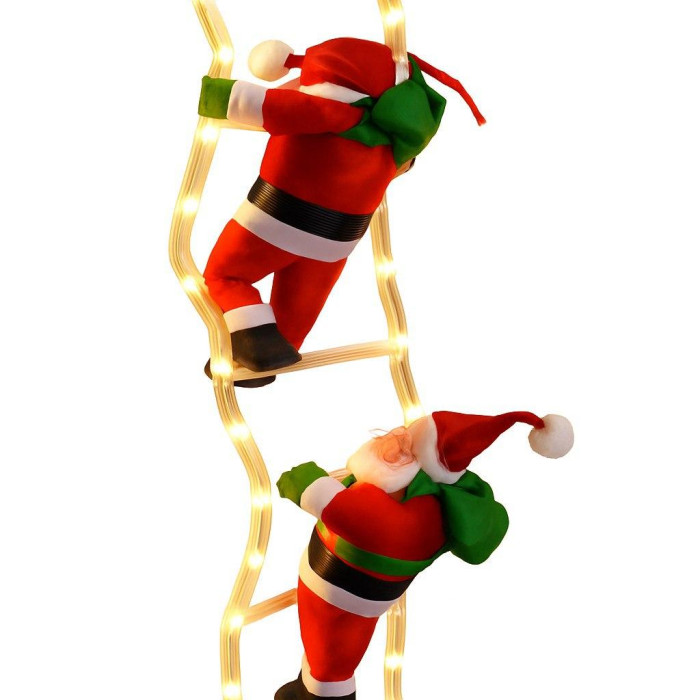 Санта 3-й на світній драбині 95 см, декоративні новорічні фігурки по 23 см