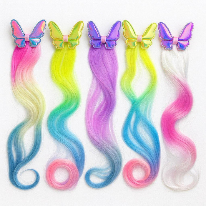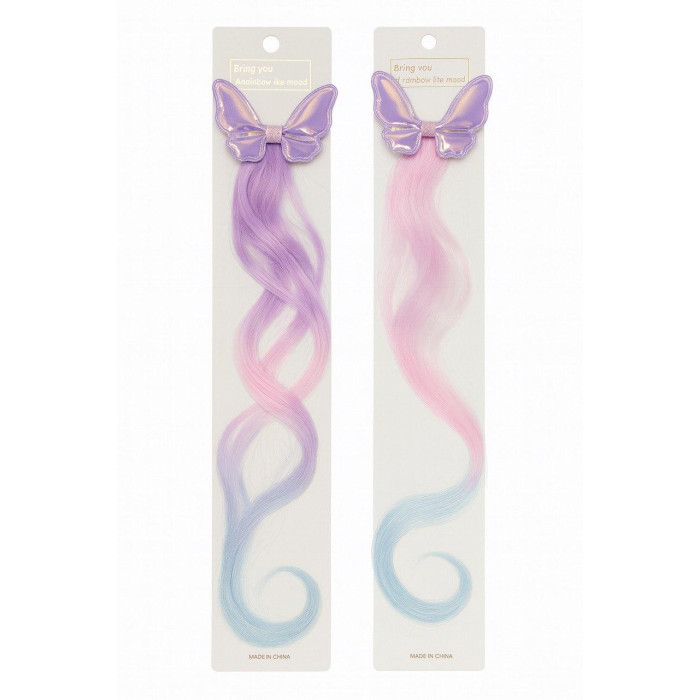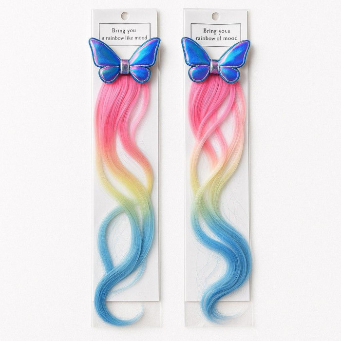 Стильное украшение для девочек с сияющей клипсой-бабочкой и мягким радужным прядём длиной 45 см. Легко крепится к волосам, не скользит и не повреждает прическу. Идеально подходит для детских праздников, фотосессий, повседневных образов и творческих игр. Яркий аксессуар, мгновенно придающий настроению и делающий образ волшебным.
