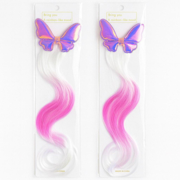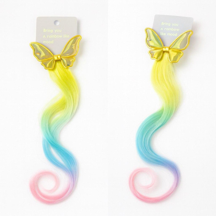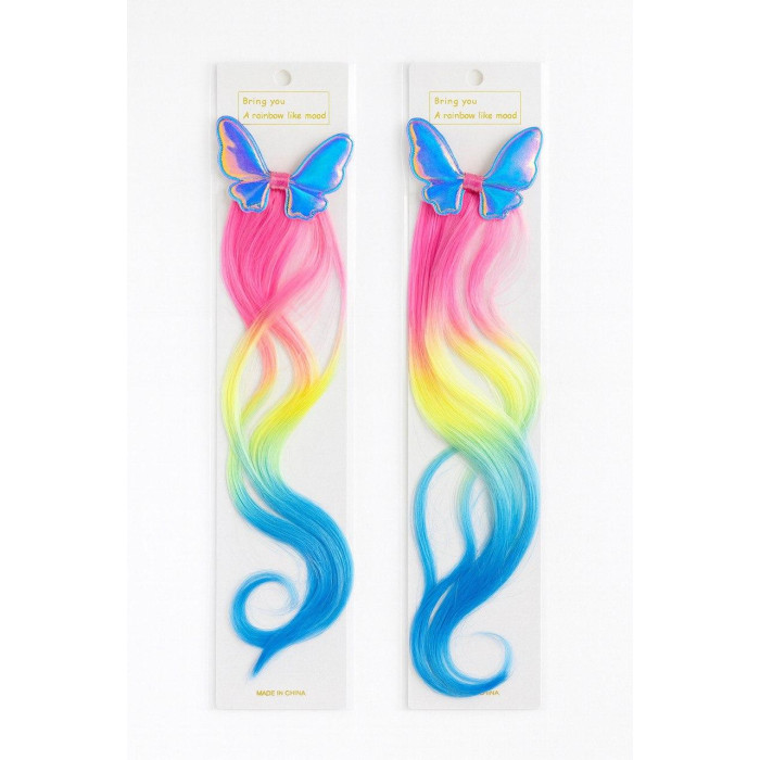 Прикраса для дівчаток з кліпсою-метеликом та райдужними пасмами, довжина виробу 45 см