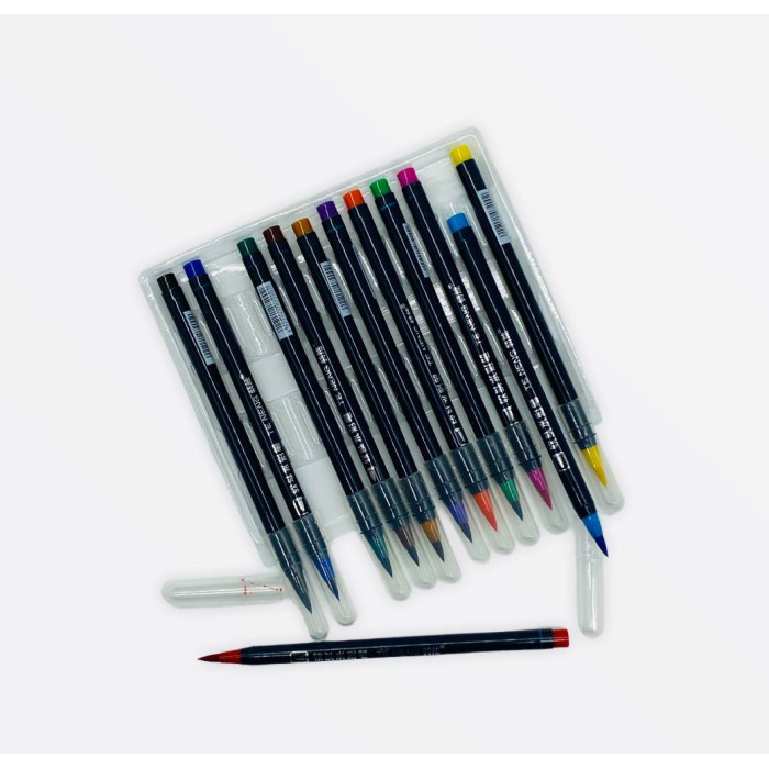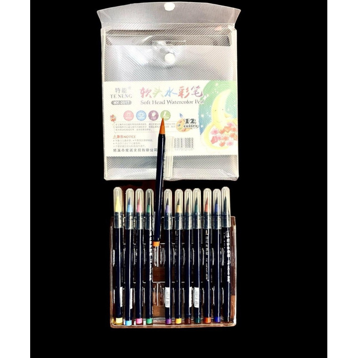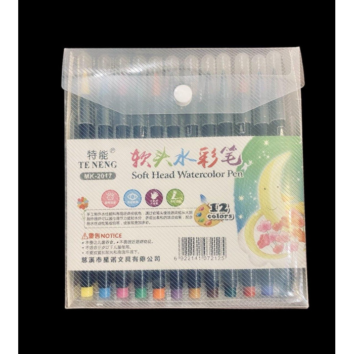 Акварельні фломастери з м'яким наконечником MK-2017, набір 12 кольорів для малювання та скетчингу