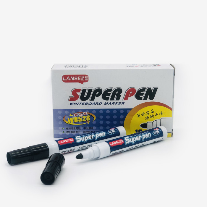Черный сухостираемый маркер "Super Pen" WB-528 предназначен для письма на белых маркерных досках. Чернила обладают высокой контрастностью, обеспечивая четкие и хорошо видимые надписи. Легко стирается без следов сухой губкой или салфеткой. Эргономичный корпус с клипсой для удобного использования и хранения. Идеальный выбор для офисных совещаний, учебных занятий и презентаций.