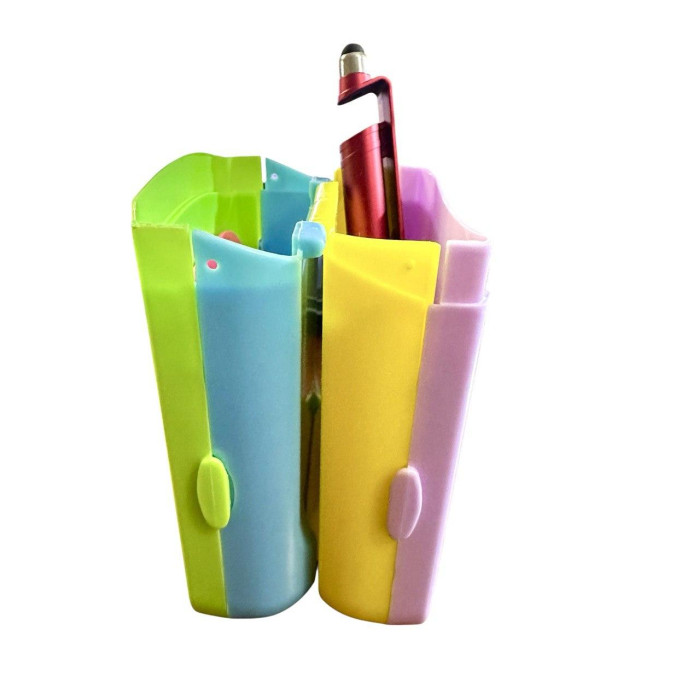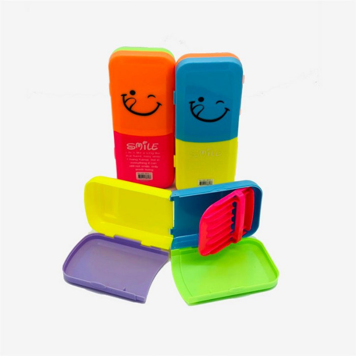 Тип: пенал-органайзер с подставкой Артикул: 8818-1 Комплектация: 1 шт. индивидуально Материал: плотный пластик/текстиль (уточнить) Особенности конструкции: Отделения для ручек и мелких принадлежностей Встроенная подставка (угол наклона ~30°) Дизайн: яркие цвета + принт "Smile" (смайлы) Размеры: ~20×10×5 см (уточнить)