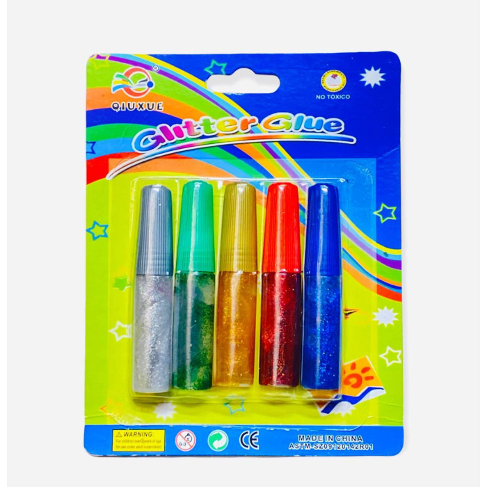 Клей силікатний з блискітками X-5, 6 гр – набір 5 кольорів для творчості та декору
