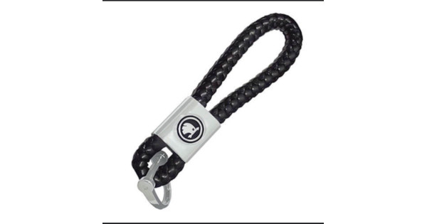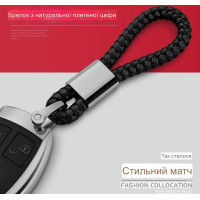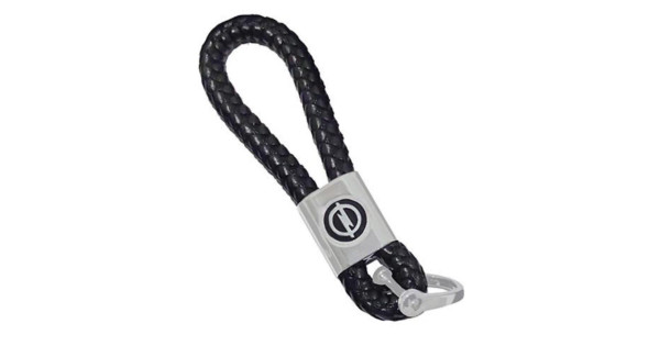 Стильный брелок для ключей с логотипом в комплекте с кожаной косичкой – отличный аксессуар для авт..