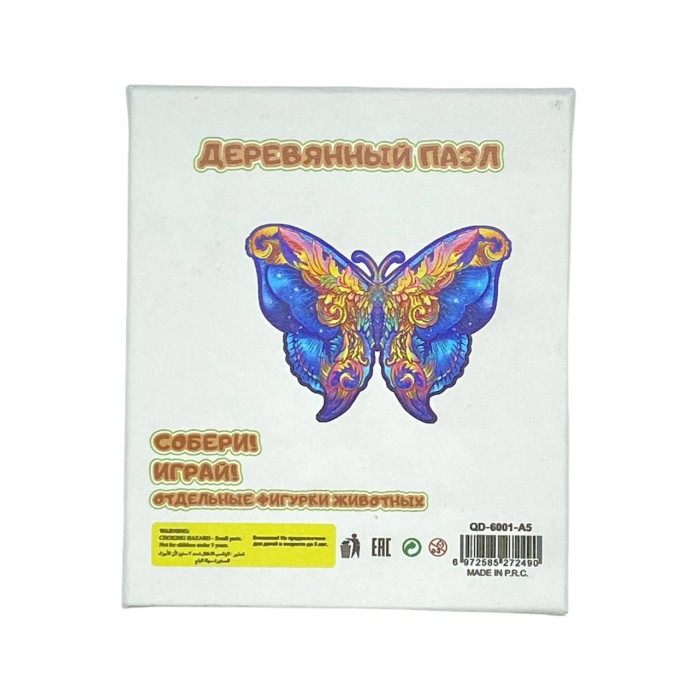 Описание товара: Яркий деревянный пазл "Бабочка" формата А4 — это увлекательная развивающая игрушка для детей от 5 лет. Изготовлен из натуральной древесины с использованием лазерной резки, что гарантирует точность деталей и их идеальное соединение. Красочное изображение бабочки делает процесс сборки интересным и познавательным, способствуя развитию мелкой моторики, логического мышления и усидчивости у ребенка. Характеристики: ✔ Материал: экологичная фанера ✔ Размер: А4 (210×297 мм) ✔ Толщина деталей: 3 мм ✔ Количество элементов: 140(оптимально для детей 5–8 лет) ✔ Уровень сложности: начальный/средний ✔ Упаковка: картонная коробка