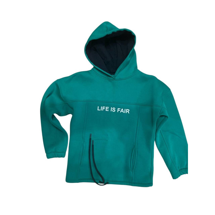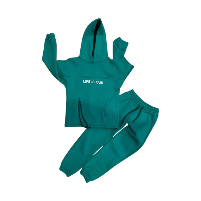 Костюм спортивний «LIFE IS FAIR» — худі та штани, бірюзовий, утеплений, унісекс